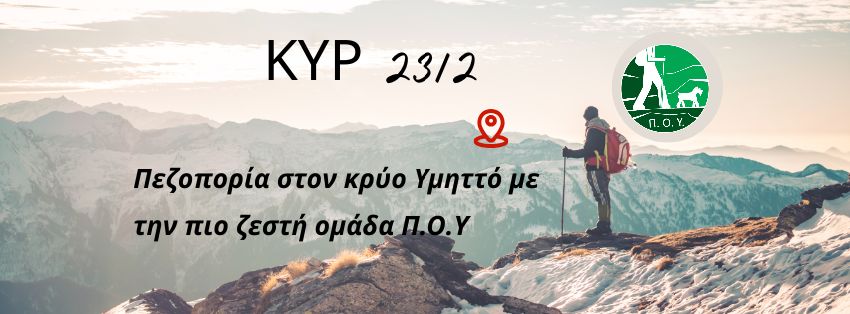 Ελάτε να πεζοπορήσετε αυτή την Κυριακή με την ομάδα της Π.Ο.Υ., να γνωρίσετε τον Υμηττό και την παρέα της ομάδας μας.